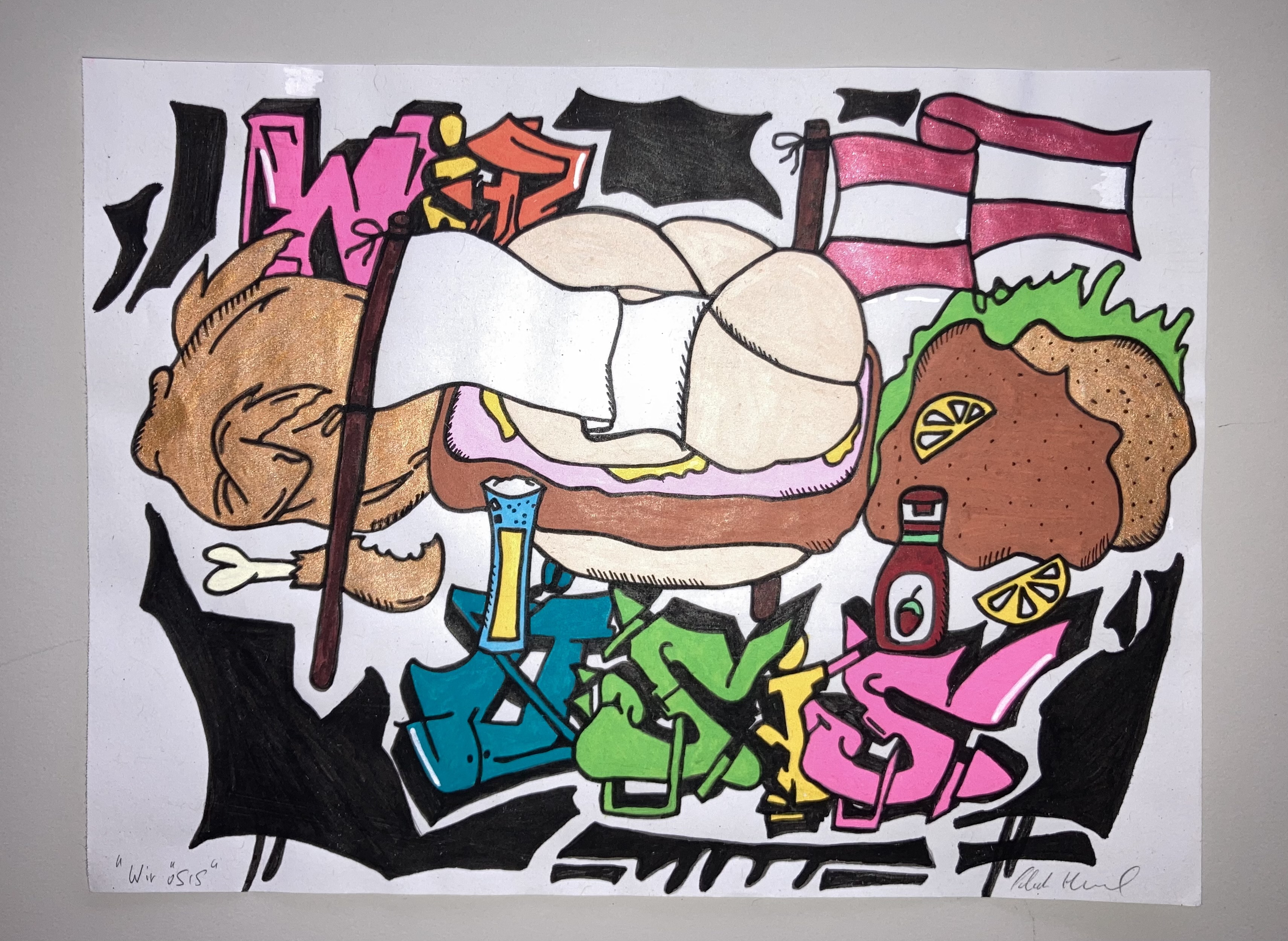 1.) WIR ÖSIS: Das Graffiti soll verdeutlichen: Wenn der Tiroler/Österreicher sein Fleischkäsesemmel, sein Grillhendl, sein Schnitzel und sein kleines Bier hat, dann wird er schwach und kapituliert!